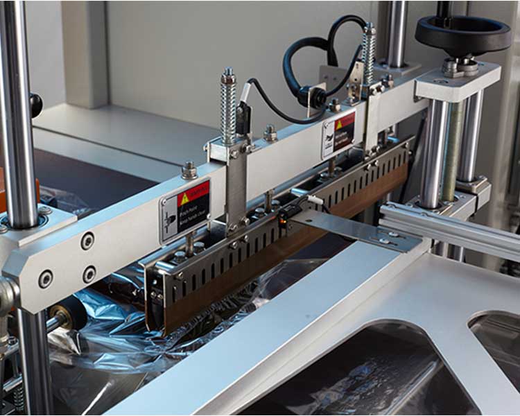 自主調節高度 封口高度可調整,當包裝物尺寸變更時,通過手輪轉動調節包裝尺寸,調整非常簡單,不 用換模具與制袋器;